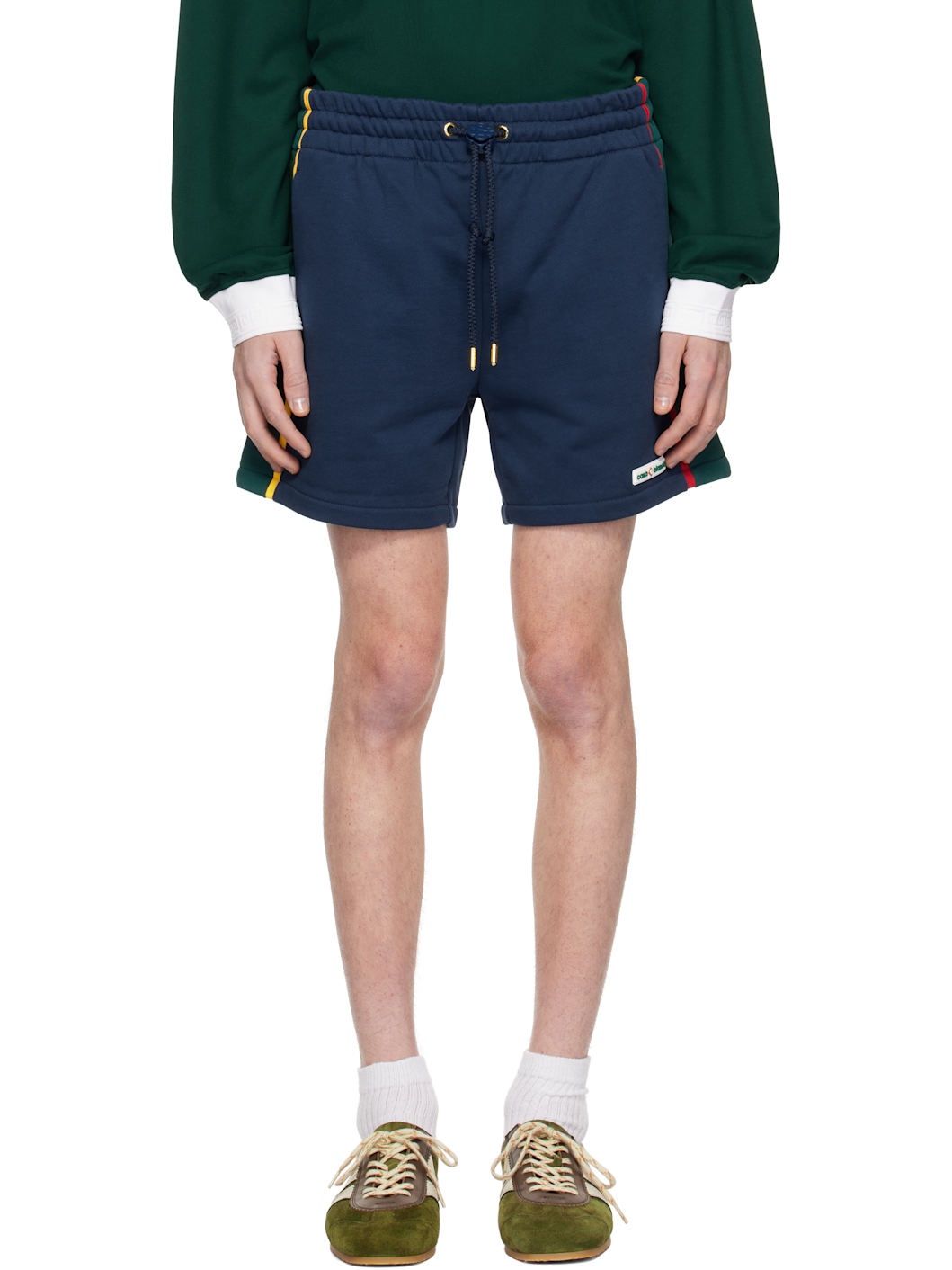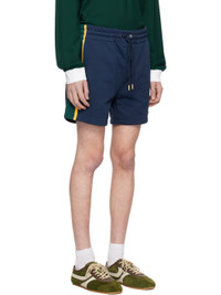 Organic cotton French terry shorts. · Cord-lock drawstring at elasticized waistband · Three-pocket styling · Rubberized logo patch at leg · Piping at outseams Supplier color: Navy 100% organic cotton. Made in Portugal 251195M193001