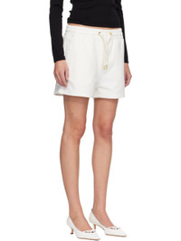 Organic cotton French terry shorts. · Drawstring at elasticized waistband · Three-pocket styling · Chenille patch and embroidered logo at cuff · Logo-engraved gold-tone hardware Supplier color: Off-white Body: 100% organic cotton. Trim 1: 70% acrylic, 25% polyester, 5% viscose. Trim 2: 100% viscose. Pocket lining: 100% organic cotton. Made in Portugal 252195F088006