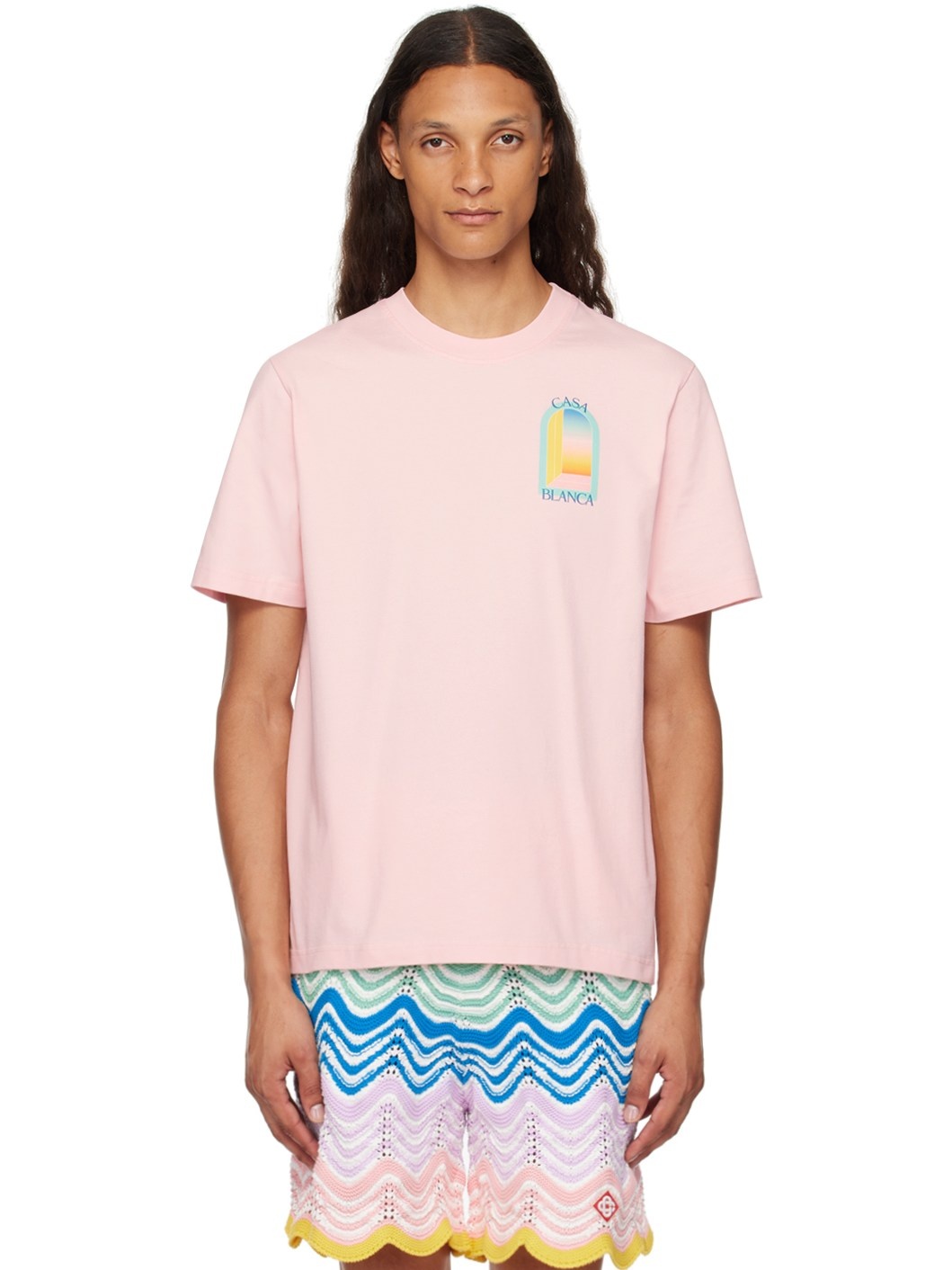 Organic cotton jersey T-shirt. · Rib knit crewneck · Logo graphic printed at chest and back Supplier color: Pink 100% organic cotton. Made in Portugal 242195M213003