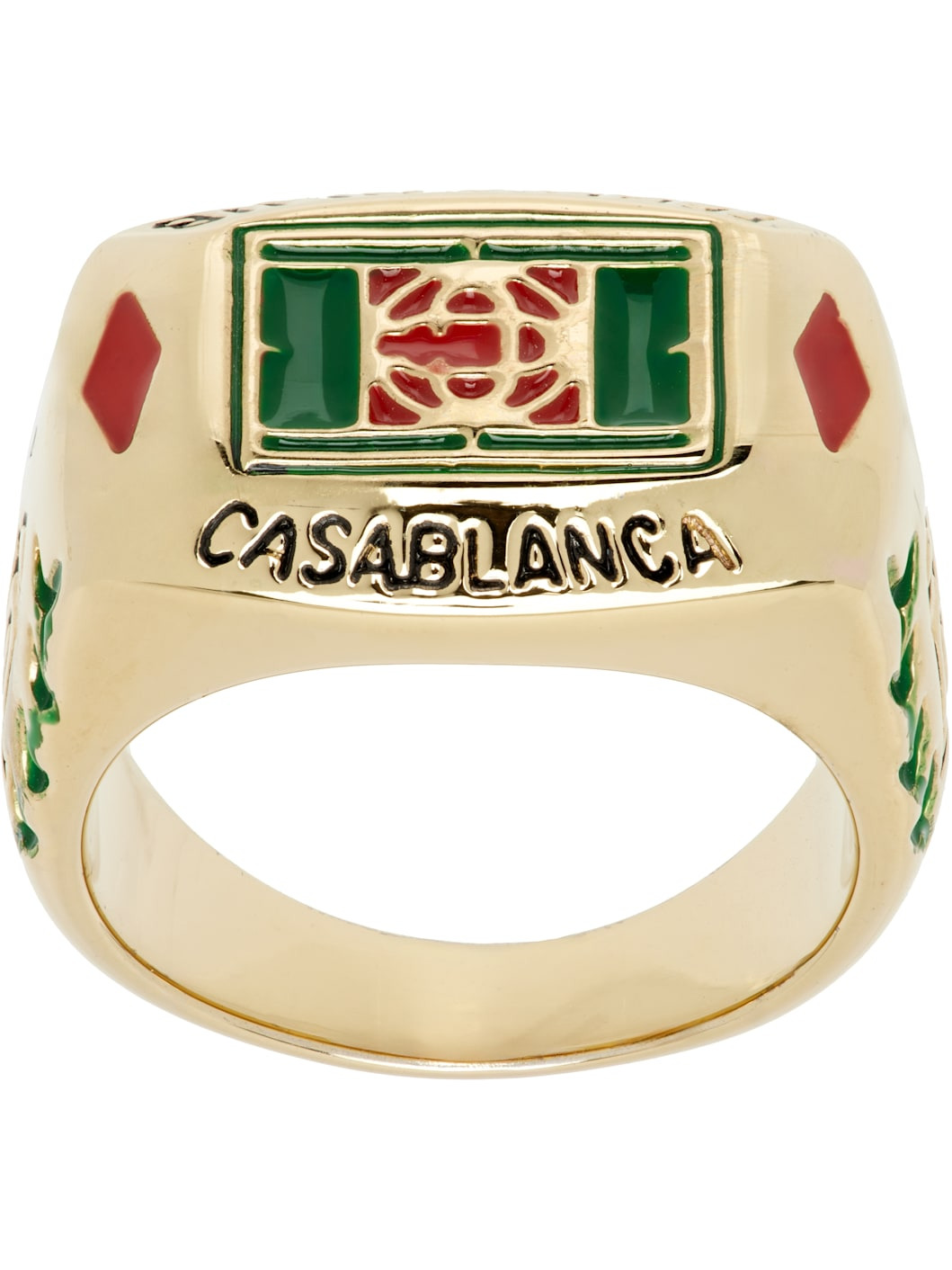 Ring in gold-tone brass. · Enameled and engraved graphics throughout · Logo and text engraved at face Supplier color: Gold/Green Brass, enamel. Made in Thailand 252195M147003