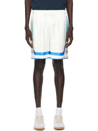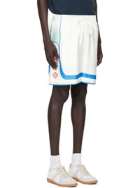Silk twill shorts. · Drawstring at elasticized waistband · Three-pocket styling · Stripes at cuffs · Logo printed at outseams and back pocket · Full crepe lining Supplier color: White Body: 100% silk. Lining: 100% polyester. Made in Italy 252195M193006