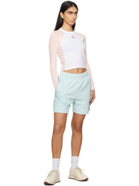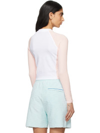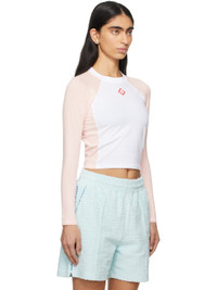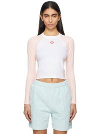 Stretch cotton jersey T-shirt. · Rib-knit crewneck · Rubber logo patch at chest · Raglan sleeves Supplier color: White/Pink 95% cotton, 5% elastane. Made in Portugal 251195F110005