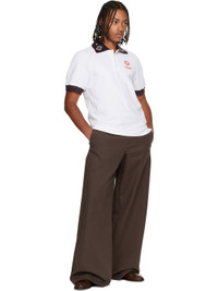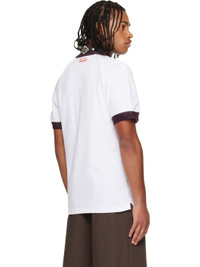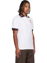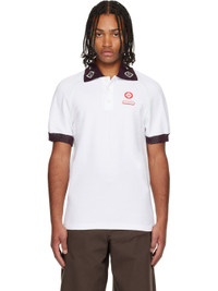 Textured cotton pique polo. · Piping throughout · Jacquard logo pattern at rib-knit chenille spread collar · Three-button placket · Rubber logo appliques at chest and back collar · Vented side seams · Raglan sleeves · Rib-knit chenille cuffs Supplier color: White Body: 100% cotton. Trim: 81% cotton, 17% polyamide, 2% elastane. Made in Portugal 252195M212011