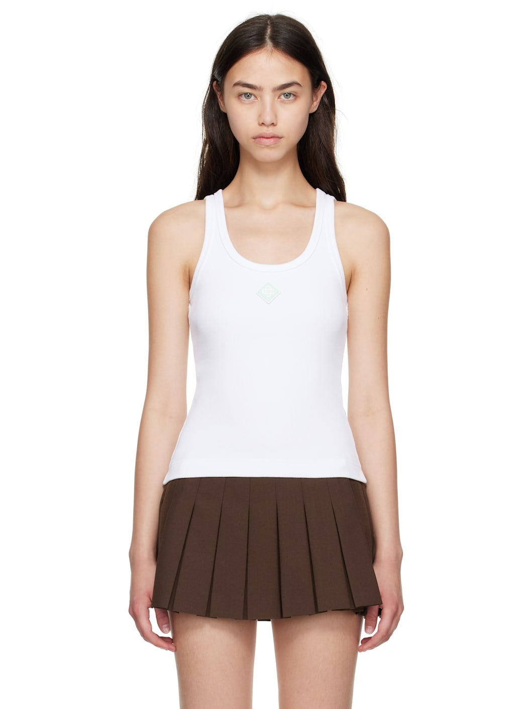 Stretch cotton ribbed jersey tank top. · Rib-knit scoop neck and armscyes · Rubberized logo patch at front · Vented side seams Supplier color: Bright white 98% cotton, 2% elastane. Made in Portugal 252195F111000