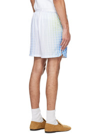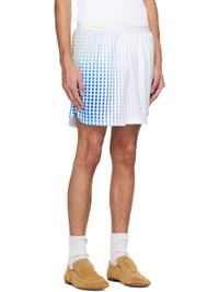 Mesh shorts. · Graphic pattern printed throughout · Logo bonded at elasticized waistband · Two-pocket styling · Embroidered logo patch at front · Vented cuffs · Brief-style mesh lining Supplier color: White Body: 100% polyester. Trim: 93% polyester, 7% elastane. Made in Portugal 261195M193012