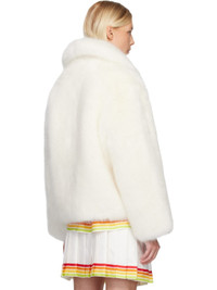 Faux-fur jacket. · Grained nappa lambskin trim throughout · Spread collar · Zip closure · Seam pockets at waist · Welt pocket at interior · Full satin lining · Logo-engraved silver-tone hardware Supplier color: White Body: 51% modacrylic, 49% acrylic. Trim: 100% lamb nappa. Lining: 100% polyester. Made in Lithuania 252195F063005