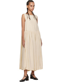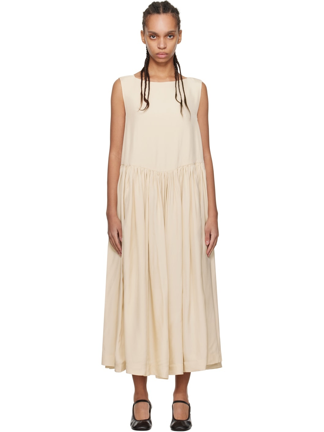Lightweight viscose twill midi dress. · Square neck · Gathering at waist · Seam pockets · Fully lined Supplier color: Cream 100% viscose. Made in Romania 251007F054000