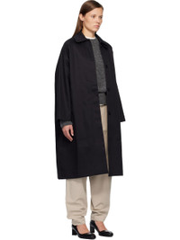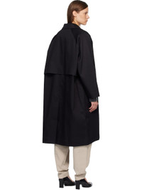 Water-repellent cotton gabardine trench coat. · Spread collar · Concealed button closure · Welt pockets · Raglan sleeves · Storm flap at back yoke · Central vent at back hem Supplier color: Black 100% cotton. Made in France 252007F067001