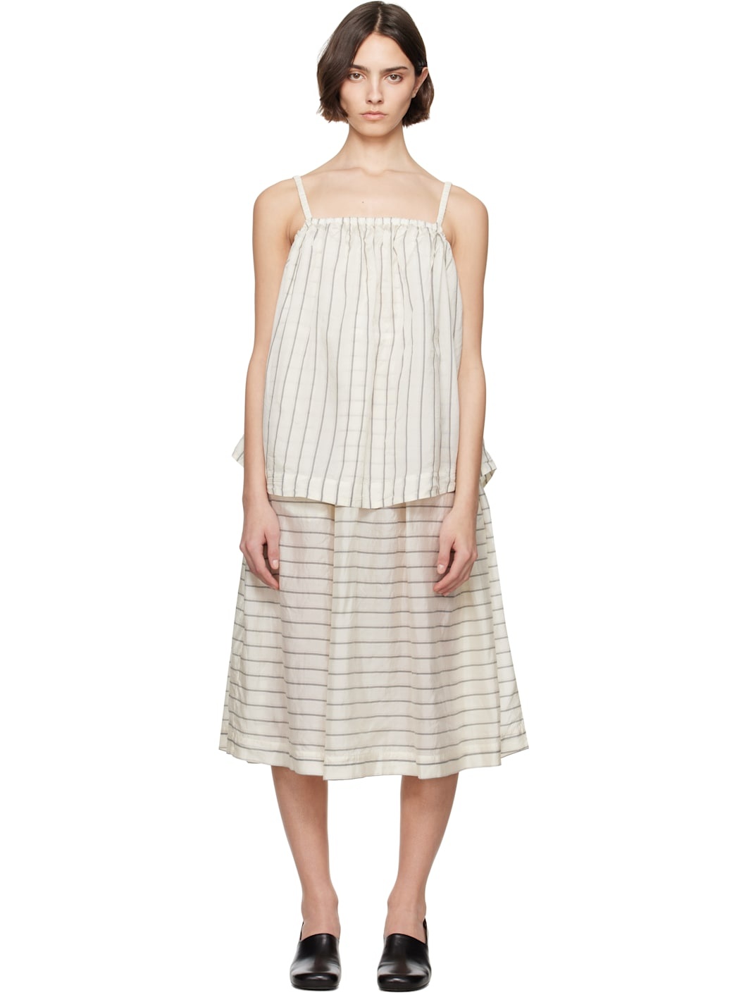 Silk organza midi dress. Stripes throughout · Layered construction · Elasticized straight neck · Gathering at waist · Seam pockets at waist · Flared skirt · Elasticized spaghetti straps · Self-tie straps at back Supplier color: Spider stripes as is 100% silk. Made in France 251007F054012