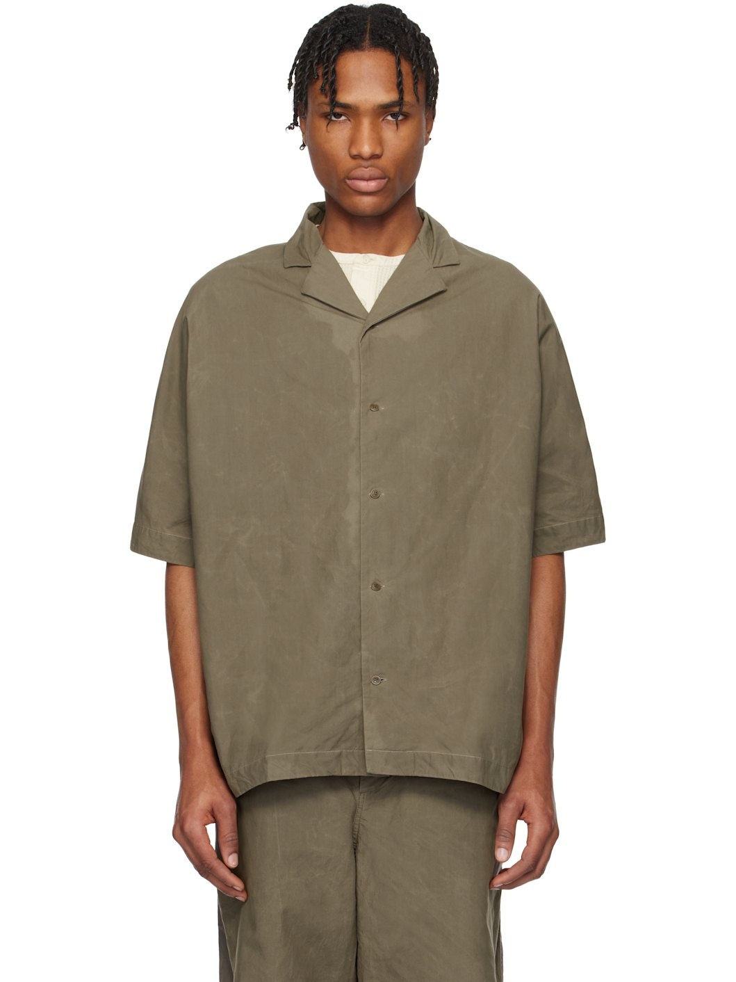 Waxed cotton canvas shirt. · Open spread collar · Button closure · Red stitch at side · Corozo hardware Supplier color: Tarmac 100% cotton. Made in France 251007M192010