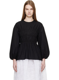 Cotton poplin blouse. · Positive Luxury Butterfly Mark-certified · Round neck · Shirring at front and back · Peplum hem · Dropped shoulders · Balloon sleeves · Gathering at cuffs · Self-tie fastening at back collar Supplier color: Black 100% cotton. Made in Latvia 261002F107000