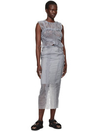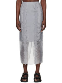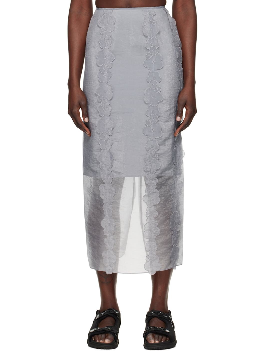 Sheer crinkled nylon- and polyester-blend organza midi skirt. · Embroidered floral appliques at front · Concealed zip closure at back waist · Slit at back hem · Partial crepe lining Supplier color: Grey Body: 55% polyamide, 45% polyester. Lining: 73% acetate, 27% silk. Made in Portugal 251002F092007