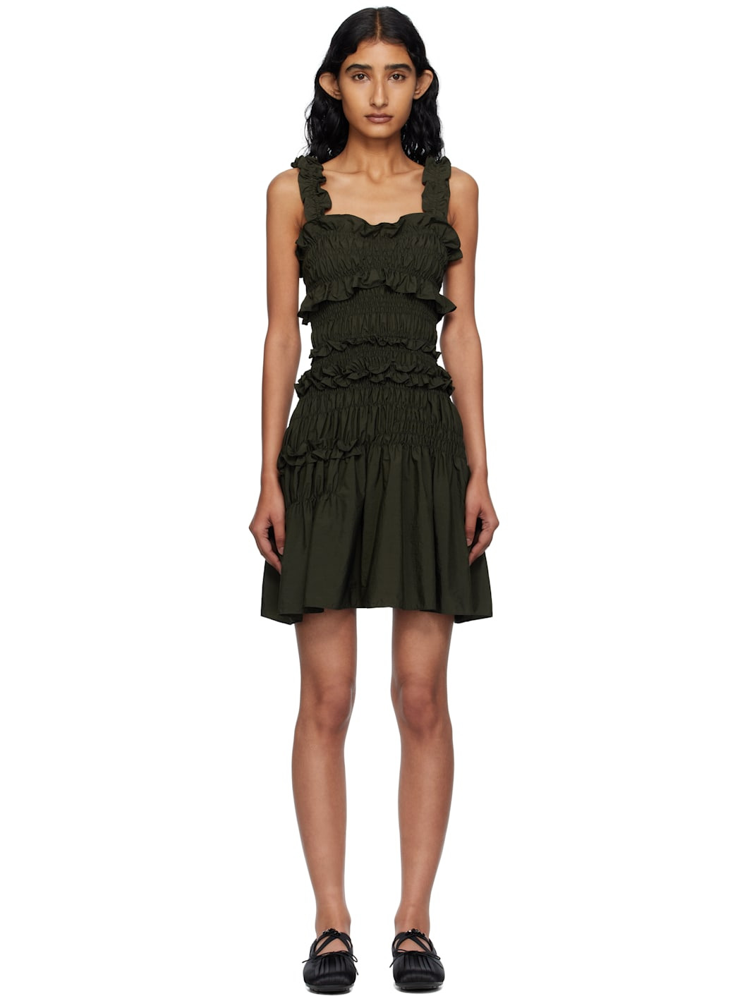 Nylon taffeta minidress. · Ruffled trim and shirring throughout · Square neck · Fixed shoulder straps Supplier color: Forest green 100% polyamide. Made in Latvia 252002F052003