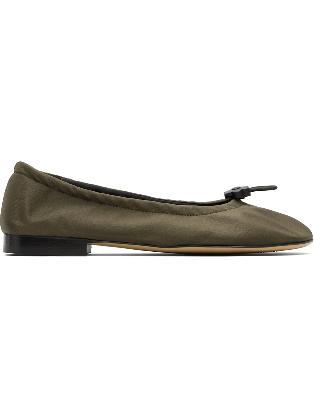 Nylon taffeta ballerina flats. · Butterfly Mark-certified · Logo hardware at bungee-style drawstring · Satin lining · Tunit sole Supplier color: Olive Upper: textile. Sole: rubber. Made in Portugal 252002F118001