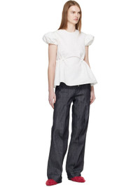 Cotton-blend poplin blouse. · Positive Luxury Butterfly Mark-certified · Jacquard floral pattern throughout · Round neck · Bungee-style drawstring at waist · Peplum hem · Puff sleeves · Self-tie fastening at back collar Supplier color: White 72% cotton, 28% polyester. Made in Latvia 261002F107002