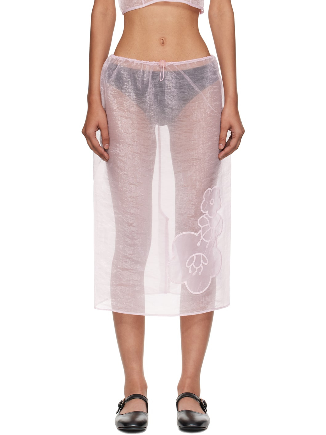 Sheer nylon-blend liquid myrtia midi skirt. · Butterfly Mark-certified · Bungee-style drawstring at waistband · Floral applique at front · Central vent at back hem · Floral hardware Supplier color: Blush pink 55% polyamide, 45% polyester. Made in Latvia 252002F092003