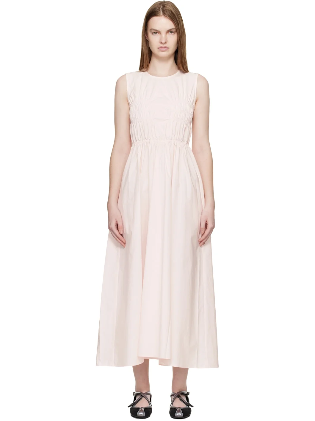 Cotton poplin midi dress. · Positive Luxury Butterfly Mark-certified · Round neck · Ruching at bodice · Seam pockets at waist · Self-tie fastening at back collar Supplier color: Blush pink 100% cotton. Made in Latvia 261002F055000