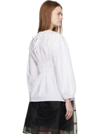Cotton poplin blouse. · Positive Luxury Butterfly Mark-certified · Round neck · Shirring at front and back · Peplum hem · Dropped shoulders · Balloon sleeves · Gathering at cuffs · Self-tie fastening at back collar Supplier color: White 100% cotton. Made in Portugal 261002F107001