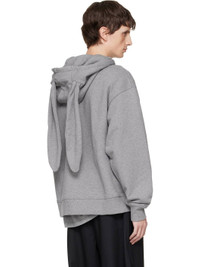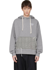 Organic cotton French terry hoodie. · Ear appliques and drawstring at hood · Logo embroidered at chest · Loose threads at cable-knit kangaroo pocket · Rib-knit hem and cuffs · Dropped shoulders Supplier color: Grey Body: 100% organic cotton. Trim: 80% lambswool, 20% recycled nylon. Made in Portugal 252101M202001