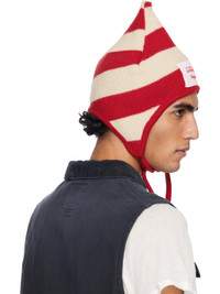 Knit lambswool-blend beanie. · Stripes throughout · Logo patch at face · Rib-knit trim at face · Ear flaps with self-tie chin strap Supplier color: Red/Ecru 80% lambswool, 20% nylon. Made in South Korea 252101M138032