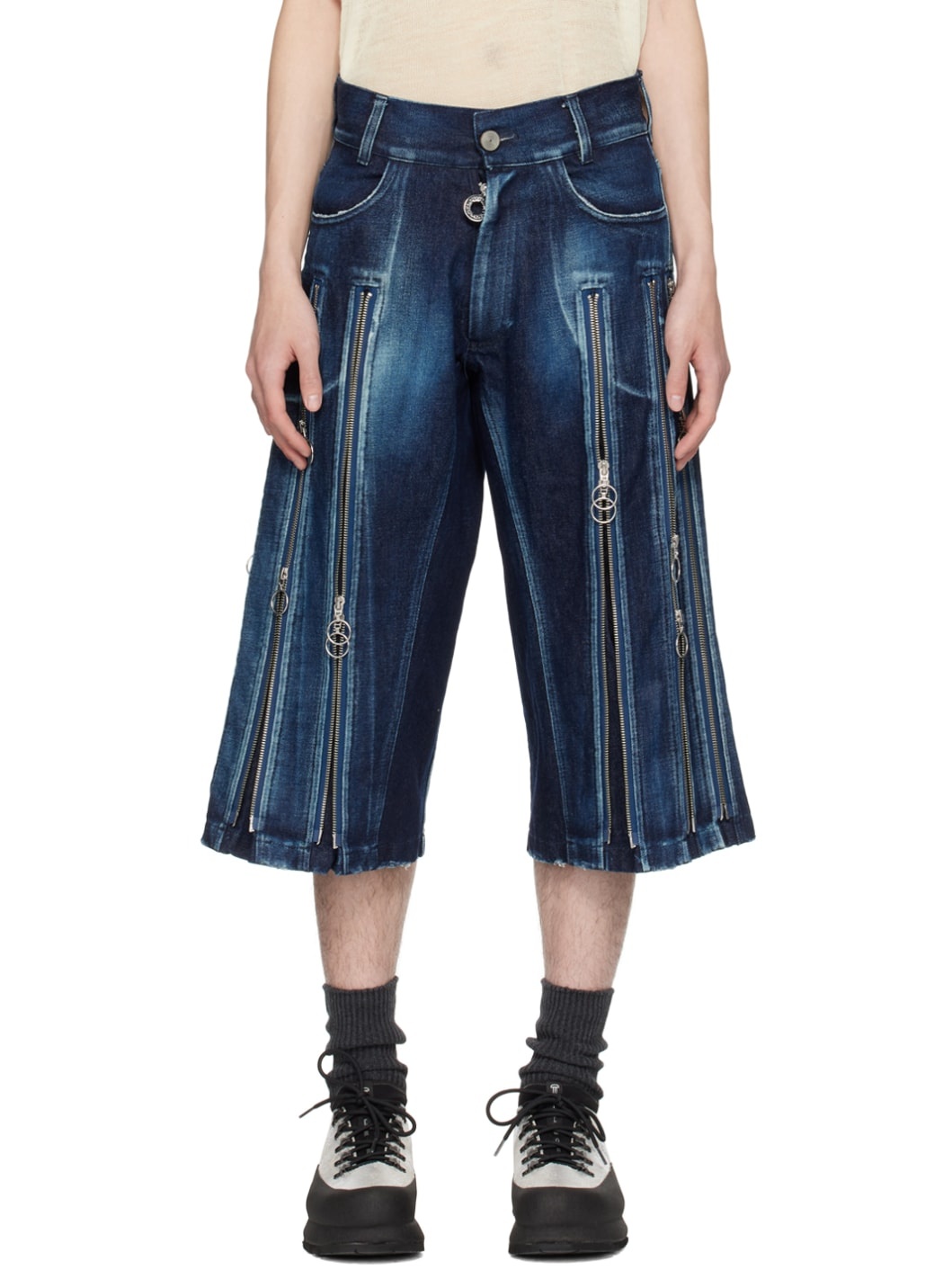 Non-stretch denim shorts. Fading and two-way zip expansion panels throughout. · Belt loops · Two-pocket styling · Logo hardware at zip-fly Supplier color: Washed indigo 100% cotton. Made in United Kingdom 241785M193004