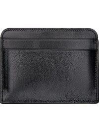 LWG-certified grained calfskin card holder in black. · Logo hardware at face · Four card slots · Central note slot · H3" x W4" Supplier color: Black Calfskin. Made in Spain 251338F037007