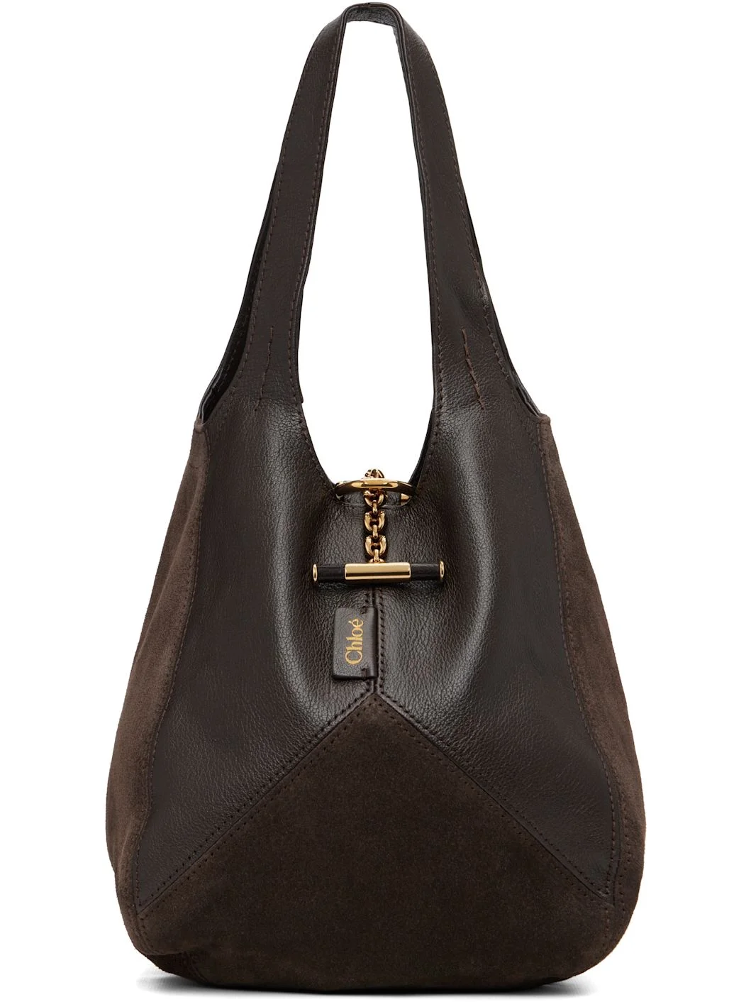 Chloé Balloon Suede Patchwork Large Shoulder Bag brown