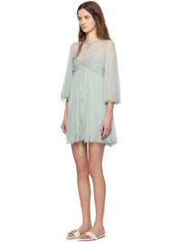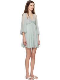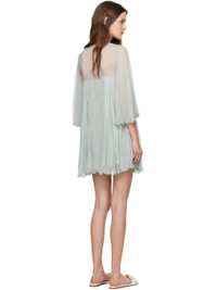 Semi-sheer silk crepon minidress. Gathering throughout. · Self-tie fastening at V-neck and chest · Ruching and drawstring at chest · Lettuce edge at hem and cuffs · Concealed zip closure at side · Partial chiffon lining Supplier color: Airy grey Body: 100% silk. Lining: 68% acetate fiber, 32% silk. Made in Madagascar 251338F052002