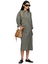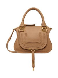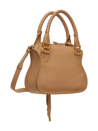 Grained calfskin shoulder bag in tan. · Burnished edges throughout · Fixed carry handles · Adjustable and detachable crossbody strap · Logo embossed at face · Flap pocket with tab-slot fastening · Zip closure · Zip pocket at interior · Linen twill lining · H9" x W12" x D3.5" Supplier color: Light tan Calfskin. Made in Italy 242338F048007