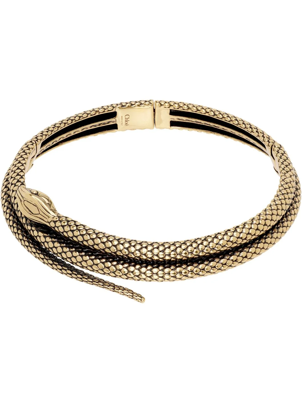 Cuff choker in antiqued gold-tone brass. · Oxidized graphic throughout · Press-release fastening · D4.5" Supplier color: Vintage gold Brass. Made in Thailand 252338F023000