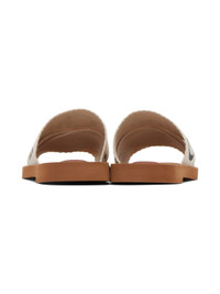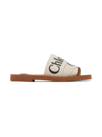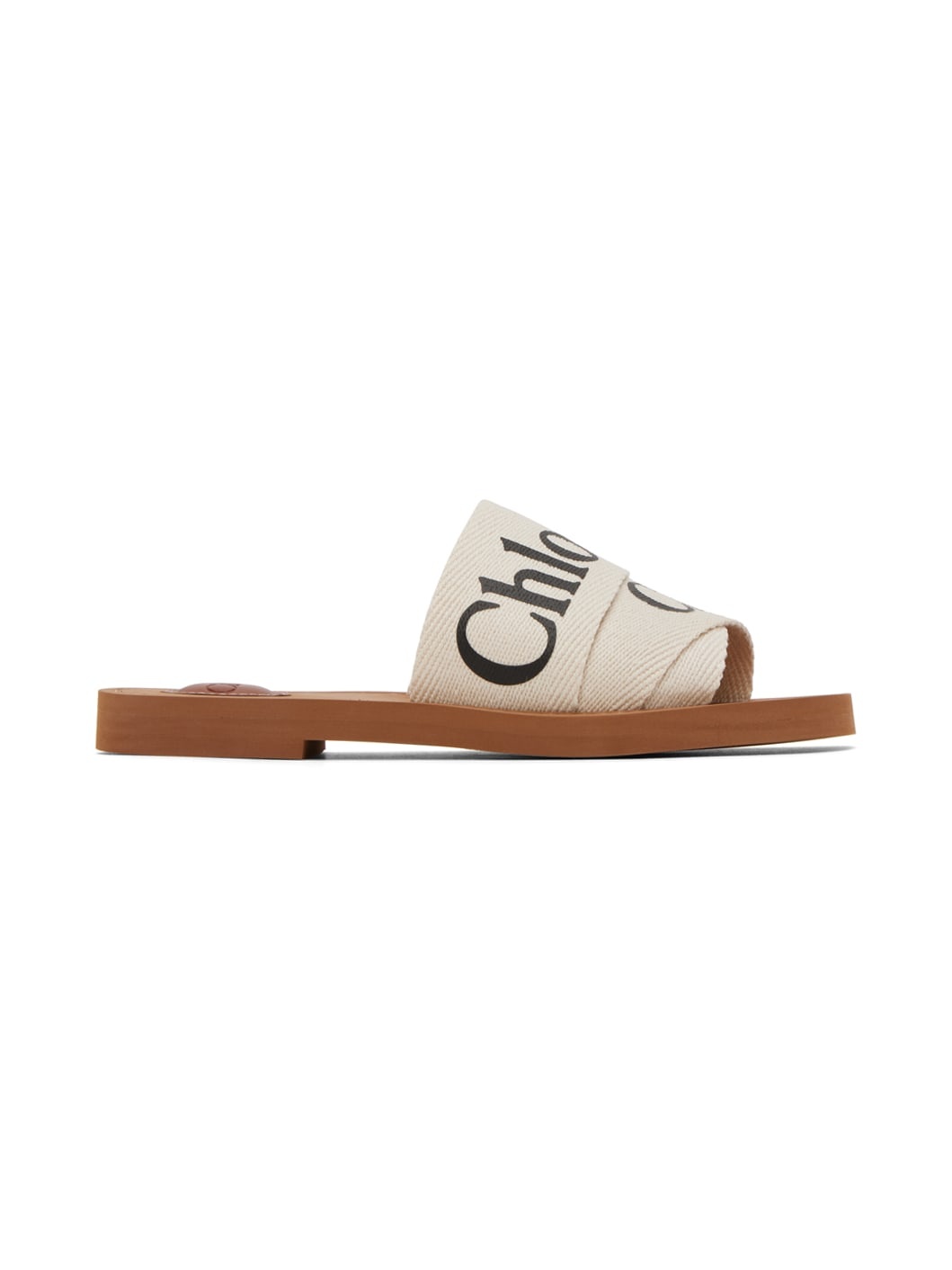 Linen webbing sandals in white. Logo bonded in black at vamp. · Open square toe · Padded logo patch at rubber footbed · Rubber sole Supplier color: White Upper: textile. Sole: rubber.