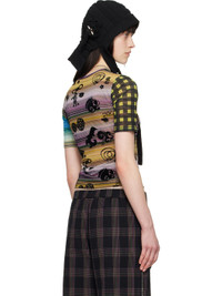 Semi-sheer stretch recycled nylon mesh T-shirt. Stripes and check pattern printed throughout. · Crewneck · Graphic pattern flocked at front and back Supplier color: Multi Body: 94% recycled nylon, 6% spandex. Trim: 100% polyester. Made in Bulgaria 251529F110008