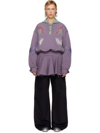 French terry midi dress. · Drawstring at hood · Three-button placket · Crystal-cut graphics at chest · Seam pockets · Flared hem · Graphic patch with check pattern at elbows · Rib-knit cuffs Supplier color: Purple multi Body: 100% cotton. Trim: 99% cotton, 1% elastane. Made in Bulgaria 252529F054004