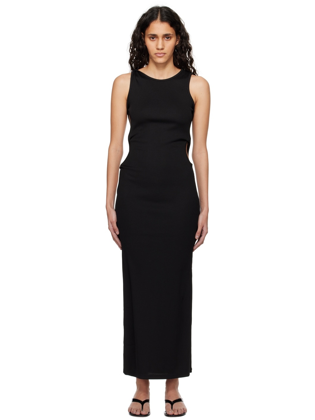 Stretch polyester ribbed jersey dress. Twisted detailing throughout. · Crewneck · Cutouts at sides · Slit at side seam Supplier color: Black 96% polyester, 4% spandex. Made in Viet Nam 241311F055020