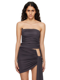 Viscose jersey bustier. Draping throughout. · Straight neck · Covered hardware with stone at side · Cutout at side · Zip closure at back Supplier color: Charcoal 100% viscose. Made in India 241311F111013