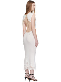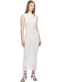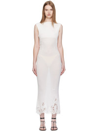 Rib-knit stretch viscose midi dress. · Semi-sheer · Lace trim throughout · Boatneck · Button fastening at back collar · Open back Supplier color: White Body: 97% viscose, 3% elastane. Trim: 100% polyester. Made in Viet Nam 252311F054002