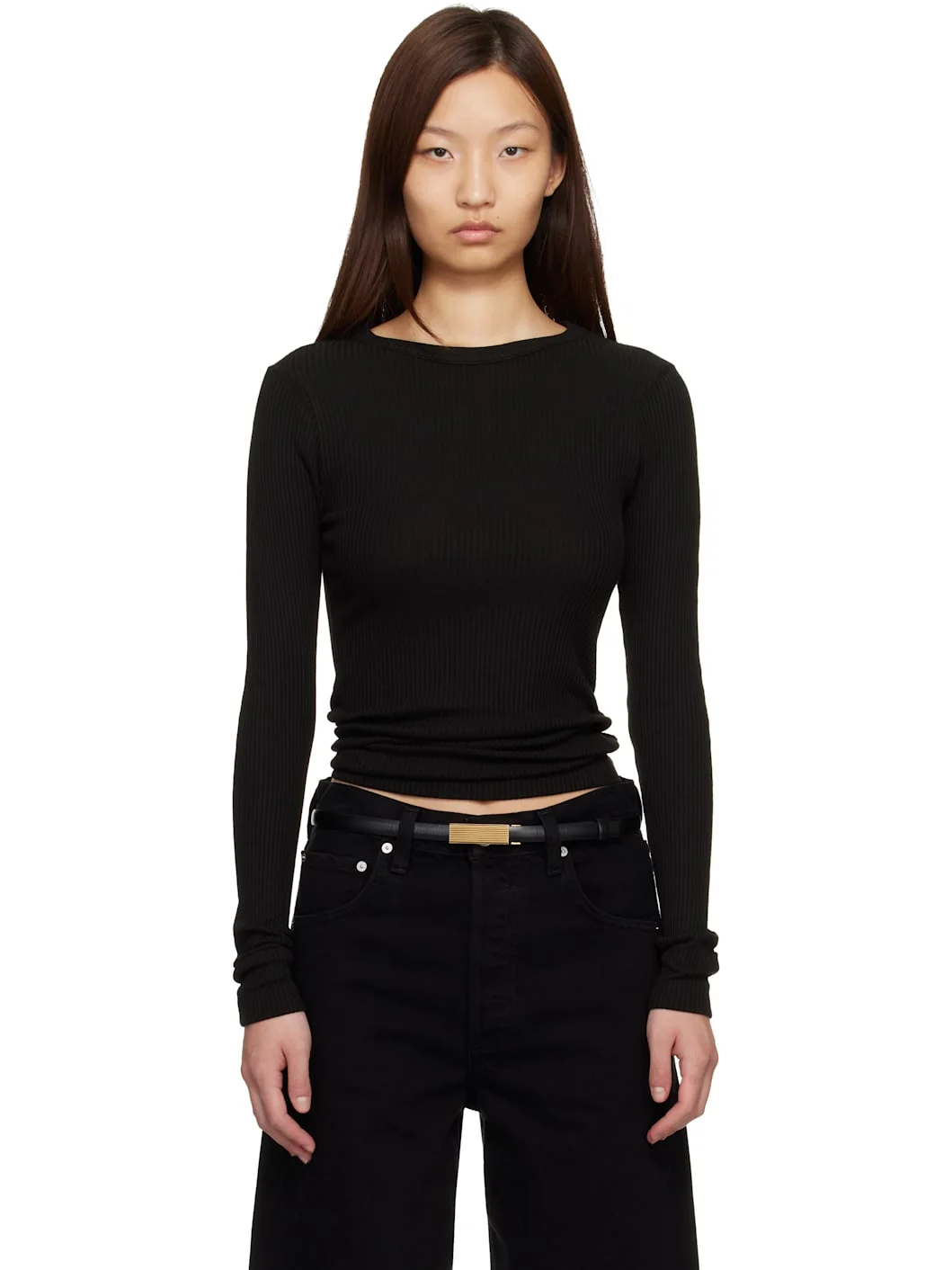Rib-knit stretch lyocell- and organic cotton-blend T-shirt. Crewneck. Supplier color: Black 67% lyocell, 29% organic cotton, 4% spandex. Made in United States 261030F110000