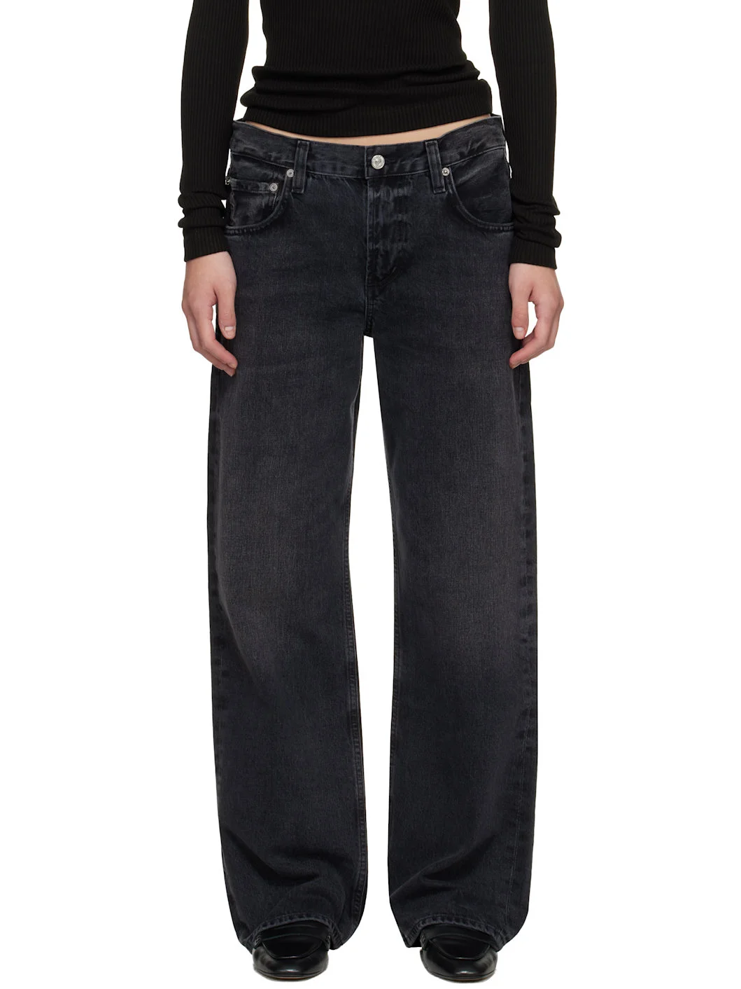 Straight-leg non-stretch regenerative cotton denim jeans. · Integrity Grown™-certified · Fading and whiskering throughout · Low-rise · Belt loops · Five-pocket styling · Zip fly · Logo flag at outseam · Logo patch at back waistband · Logo-engraved silver-tone hardware Supplier color: Vintage Black 100% regenerative cotton. Made in Turkey 261030F069026