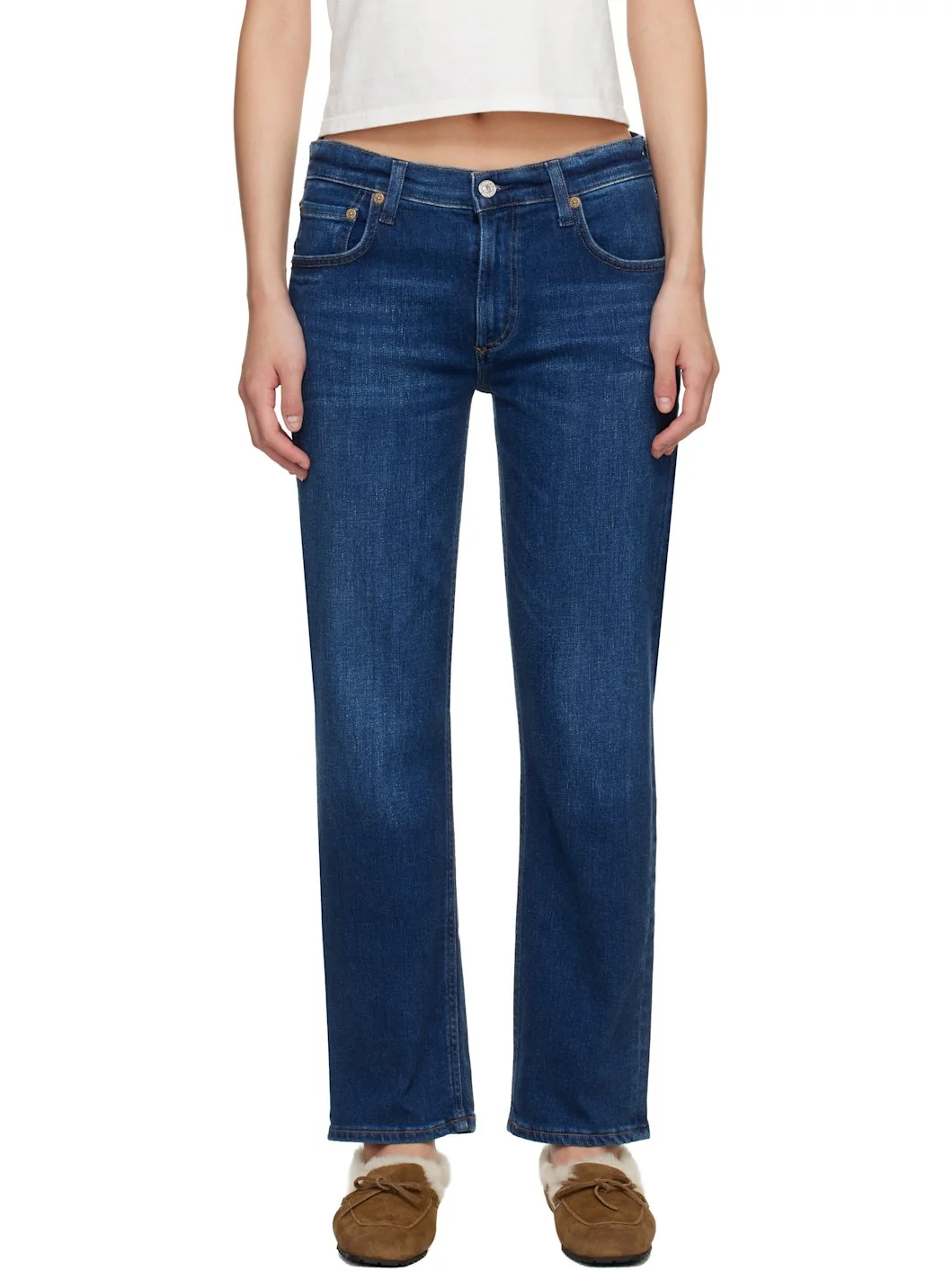 Straight-leg stretch cotton- and cashmere-blend denim jeans. · Fading and whiskering throughout · Low-rise · Belt loops · Five-pocket styling · Zip fly · Logo flag at outseam · Logo patch at back waistband · Logo-engraved silver-and bronze-tone hardware · Contrast stitching in tan Supplier color: Pierre 93% cotton, 5.5% cashmere, 1.5% elastane. Made in Turkey 261030F069028