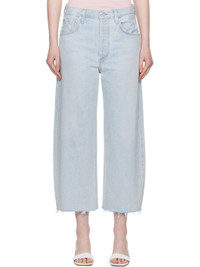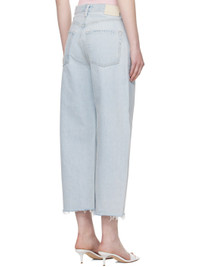 Non-stretch regenerative cotton denim jeans. Fading, whiskering, and distressing throughout. · Belt loops · Five-pocket styling · Button fly · Frayed edge at cuffs · Logo patch at back waistband · Logo-engraved silver-tone hardware · Contrast stitching in beige Supplier color: Sailor 100% regenerative cotton. Made in United States 252030F069006