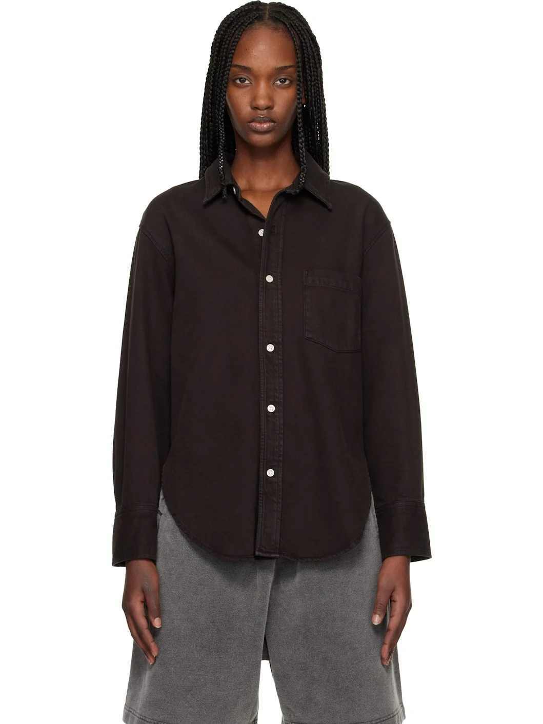 Organic cotton- and REFIBRA™ lyocell-blend twill shirt. · Spread collar · Button closure · Shirttail hem · Patch pocket at chest · Dropped shoulders · Buttoned barrel cuffs · Locker loop at back yoke Part of the HUMANITY collection. Supplier color: Carob 60% cotton, 40% lyocell. Made in Turkey 261030F109007