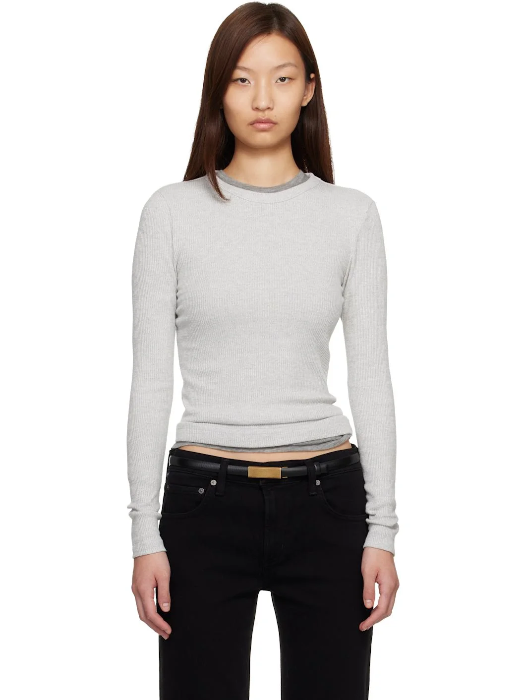 Rib-knit stretch T-shirt. Crewneck. Supplier color: Heather Grey 46% polyester, 32% cotton, 18% rayon, 4% spandex. Made in United Arab Emirates 261030F110001