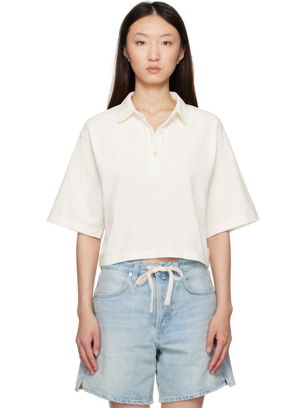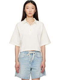 Supima cotton pique polo. · Rib-knit spread collar · Three-button placket · Cropped hem · Dropped shoulders Supplier color: Pashmina 100% cotton. Made in United States 252030F108001