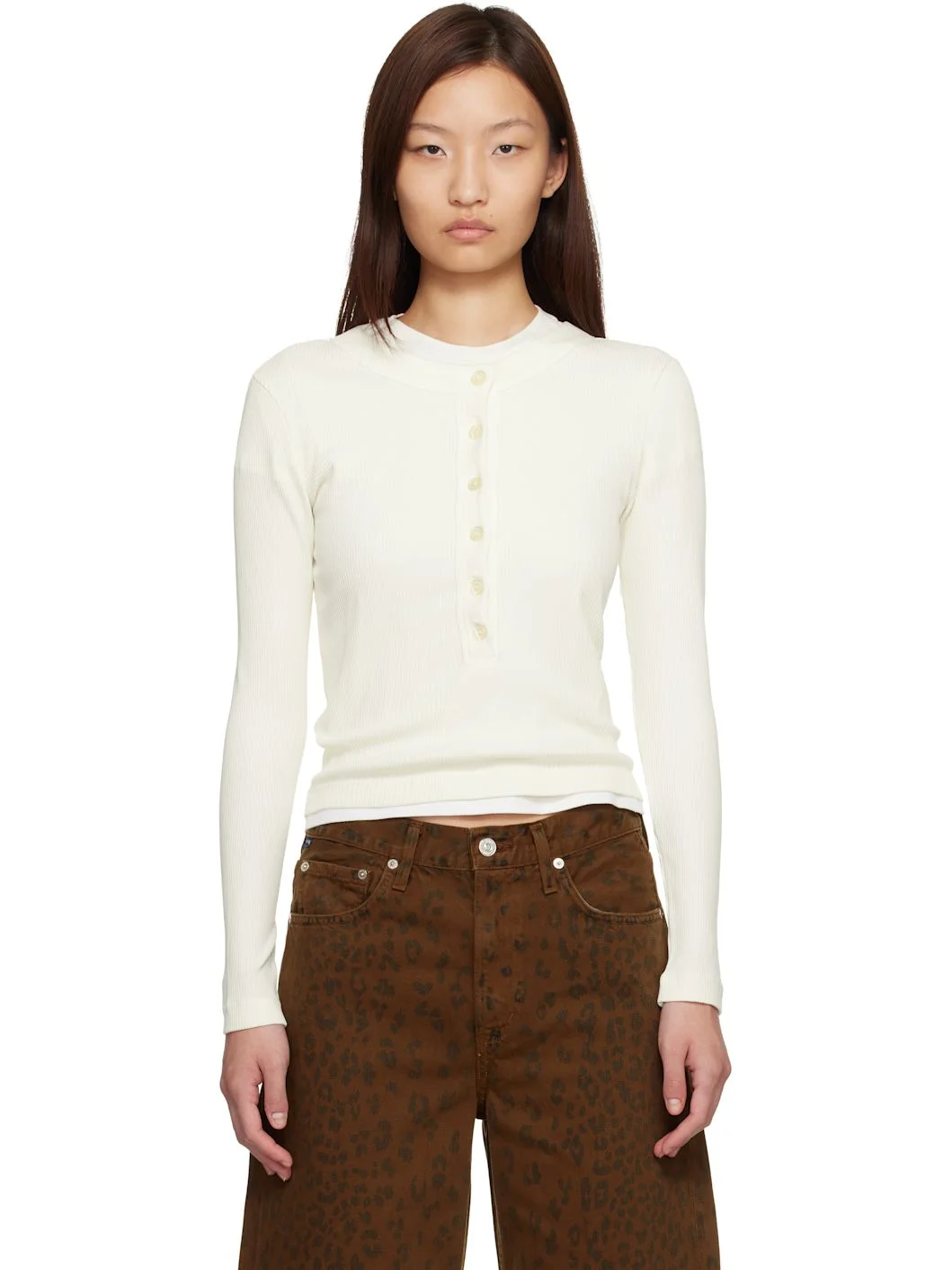 Stretch organic cotton- and lyocell-blend ribbed jersey T-shirt. · Crewneck · Six-button placket Supplier color: Pashmina 49% organic cotton, 49% lyocell, 2% spandex. Made in United States 261030F110002