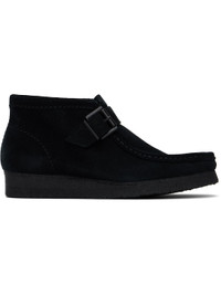 Ankle-high suede boots in black. · Hand-stitched detailing at square moc toe · Pin-buckle strap at vamp · Bellows tongue · Suede lining · EVA rubber midsole · FSC-certified crepe rubber sole Supplier color: Black suede Upper: leather. Sole: rubber. Made in Viet Nam 242094F120009