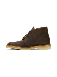 Ankle-high waxed leather desert boots in brown. · Logo tags at lace-up closure · Breathable grained leather lining · Topstitching at welt · EVA rubber midsole · Crepe rubber sole Supplier color: Beeswax Upper: leather. Sole: rubber. Made in Viet Nam 242094M224010