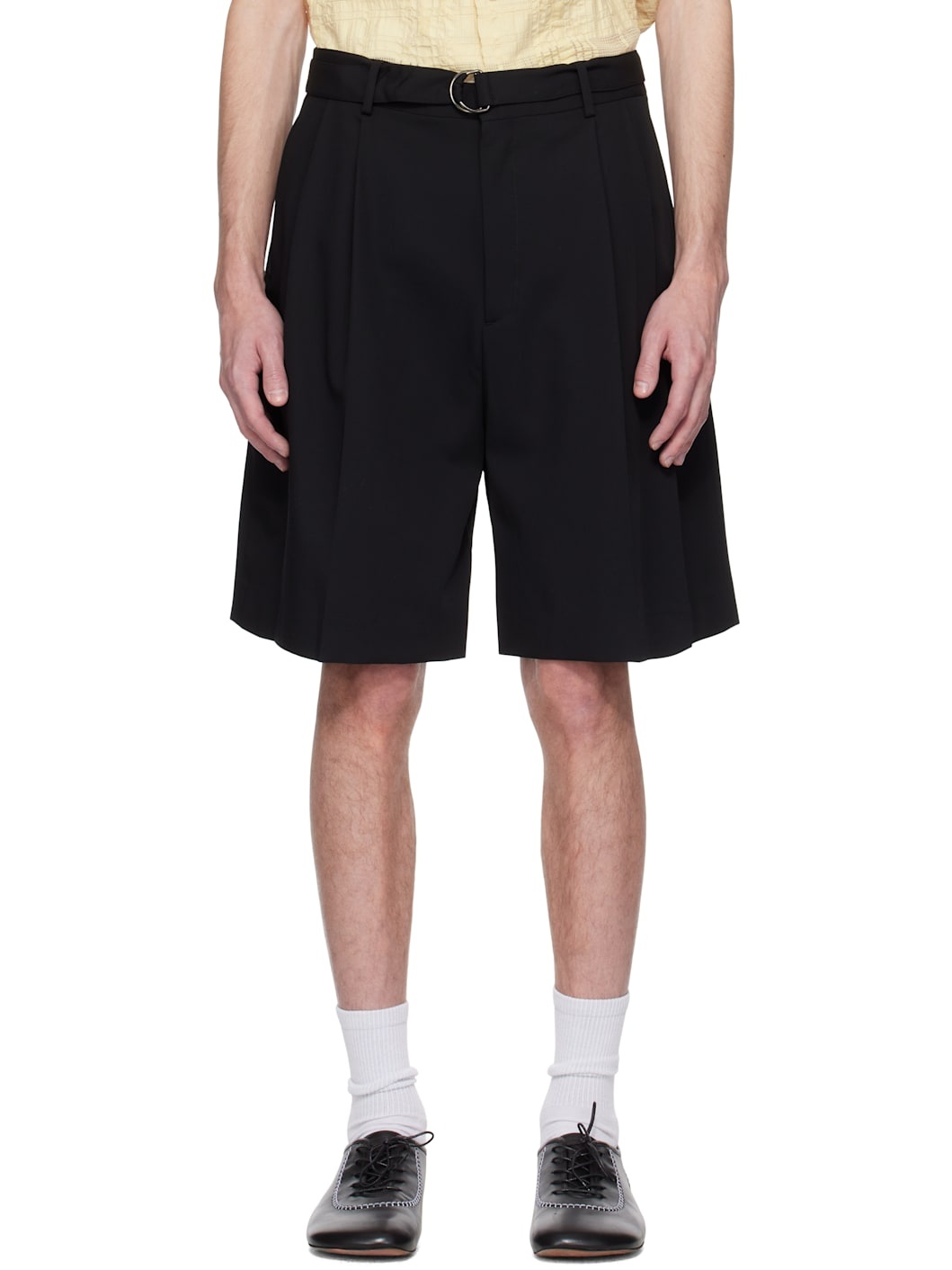 Wide-leg virgin wool twill shorts. · Belt loops and detachable cinch belt · Four-pocket styling · Zip fly · Pleats at front · Creased legs · Darts at back waistband Supplier color: Black 100% virgin wool. Made in Portugal 251756M193003