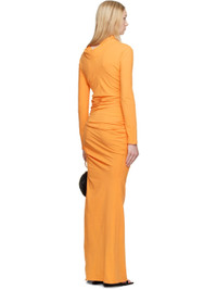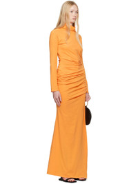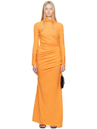 Stretch cotton jersey maxi dress. · Draped construction · Raw edge at mock neck · Central seam at front and back · Gathering at side seams Supplier color: Flaming june 92% cotton, 8% elastane. Made in United States 251275F055000