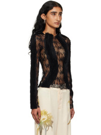 Sheer recycled nylon-blend lace top. · Gathered stripes and raw edges throughout · Round neck · Concealed zip closure at side seam · Hook-eye fastening at keyhole back collar Supplier color: Black 51% nylon, 49% recycled nylon. Made in United States 252236F110000