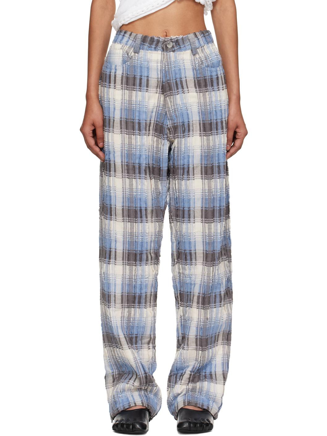 Cotton tweed jeans. · Paneled construction · Raw edges throughout · Loose-fit · Mid-rise · Belt loops · Five-pocket styling · Zip fly Supplier color: Ice blue plaid 100% cotton. Made in United States 252236F069000